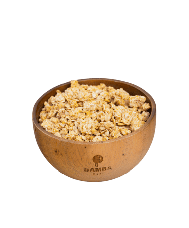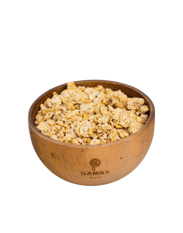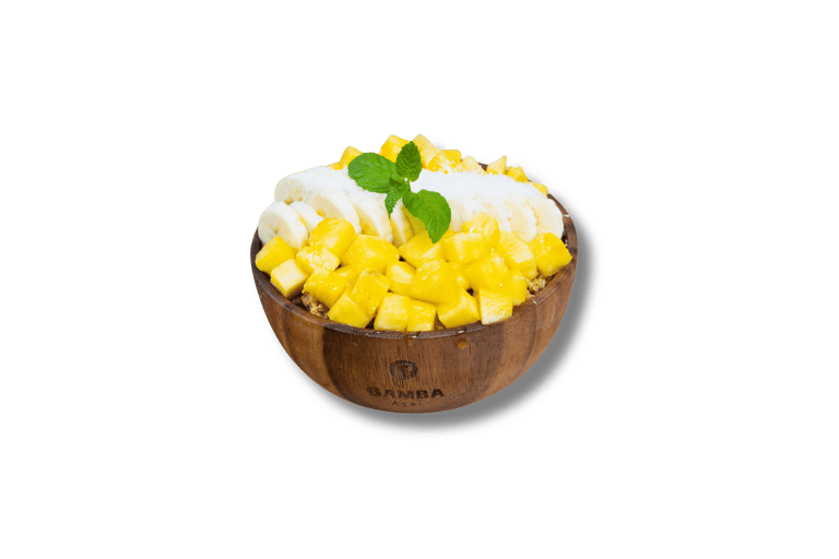 Ingredientes: Base de açai, granola, crema de mango, mango, piña, coco y miel.